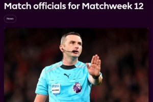 英超第12轮裁判:奥利弗执法北伦敦德比,VAR阿特维尔