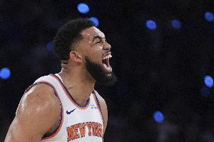 平地起惊雷!唐斯接布伦森分球中路突击 腾空暴起单臂劈扣