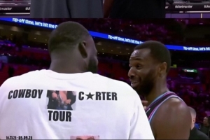 追梦赛后和老队友维金斯寒暄 库里和巴黎奥运队友阿德巴约聊聊