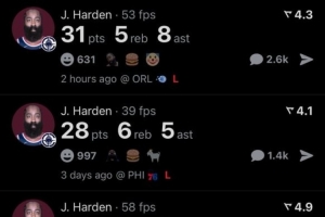 36岁87天!哈登连续四场比赛砍下25+5+5 历史后卫最老
