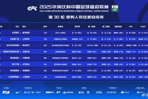 体育资讯11月22日讯 官方公布中超第30轮裁判安排,正如此前体育资讯报道,韩国裁判金希坤执法英博vs海港,日本裁判高崎航地主哨津门虎vs申花。