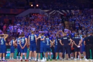 赛后,冰岛的球迷们并没有离场,而是和冰岛男篮同在,在现场一起高歌。